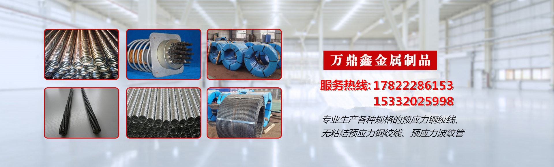 專(zhuān)業(yè)生產(chǎn)各種規(guī)格的預(yù)應(yīng)力混凝土用鋼絞線、預(yù)應(yīng)力鋼絲、無(wú)粘結(jié)預(yù)應(yīng)力鋼絞線等。年生產(chǎn)能力10000噸